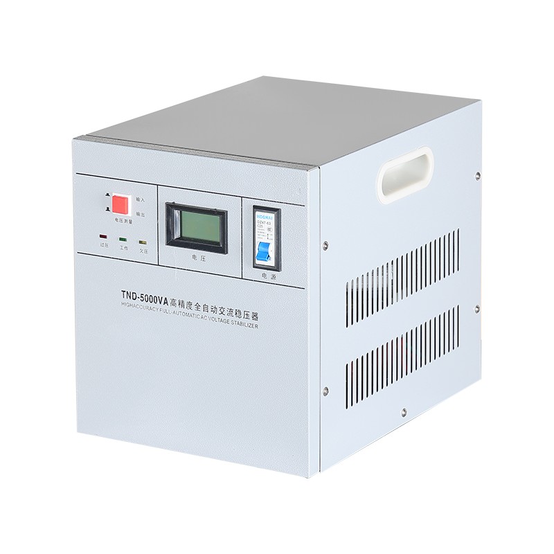 Vraag: Hoe kies ik de juiste capaciteit voor een volautomatische AC-spanningsstabilisator van TND? A: Belangrijke stappen: Bereken het totale vermogen: Maak een lijst van alle apparaten die zullen worden aangesloten op de volautomatische AC-spanningsstabilisator van TND, en tel hun nominale vermogen op (in eenheden van watt W of kilovolt-ampère kVA). Opmerking: Het startvermogen van inductieve belastingen (zoals motoren, compressoren) kan 3-7 keer de nominale waarde zijn, dus het moet worden berekend op basis van het startvermogen. Houd rekening met een veiligheidsmarge: Vermenigvuldig het totale vermogen met een veiligheidsfactor (aanbevolen 1,2-1,5) om de minimale capaciteit van de vereiste spanningsstabilisator te verkrijgen. Bijvoorbeeld: Als de totale belasting 8 kVA bedraagt, moet een spanningsstabilisator van minimaal 10 kVA worden geselecteerd. Bevestig de spanning: Zorg ervoor dat het ingangsspanningsbereik van de TND volautomatische AC-spanningsstabilisator de schommelingen van uw lokale elektriciteitsnet (zoals 170V - 250V) kan dekken, en dat de uitgangsspanning voldoet aan de vereisten van de apparatuur (zoals 220V).